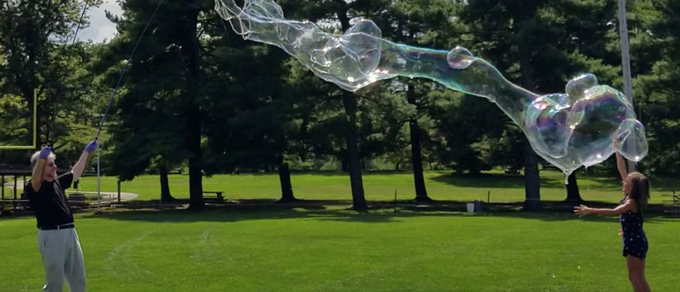 We are Outdoor Entertainers, with our ideal venue being a grassy area such as a public park or large home lawn. We need approximately 100 sq. feet to set up our performing area. Our unique blend of 'giant' soap bubbles, music and audience participation will bring your event to a whole new level.
