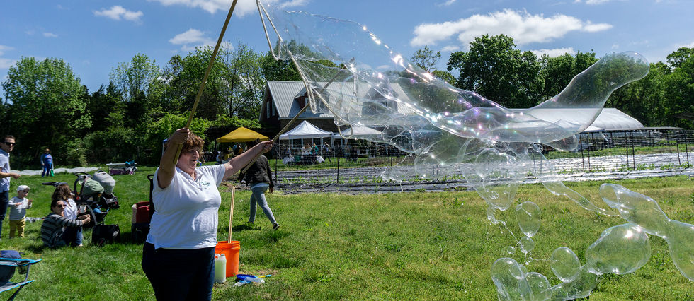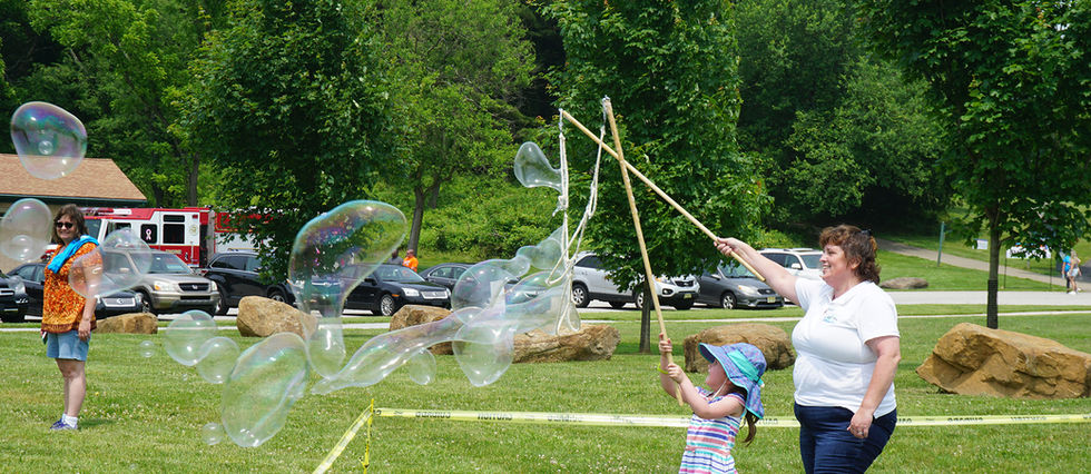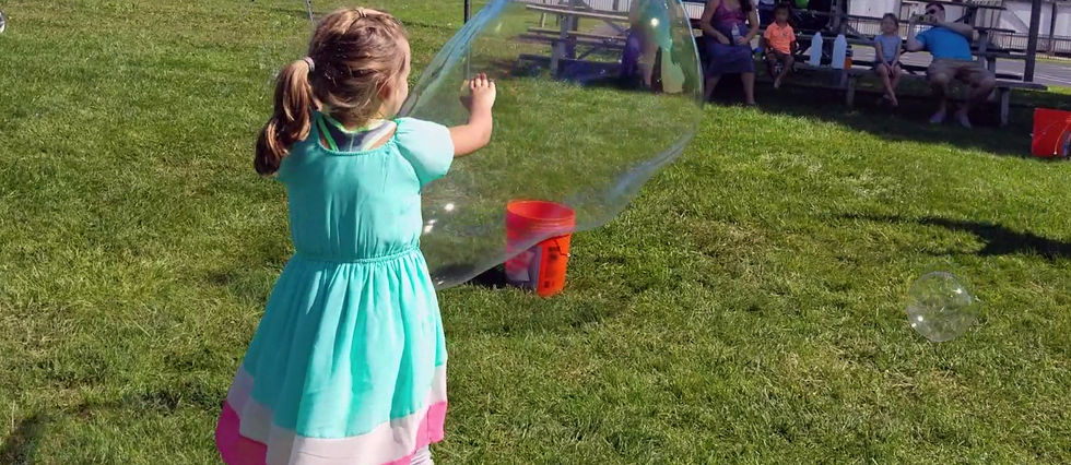 We are Outdoor Entertainers, with our ideal venue being a grassy area such as a public park or large home lawn. We need approximately 100 sq. feet to set up our performing area. Our unique blend of 'giant' soap bubbles, music and audience participation will bring your event to a whole new level.